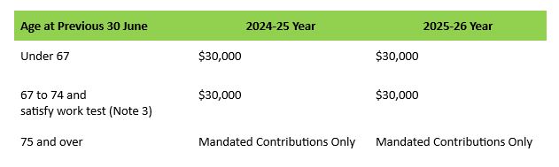 Non-Concessional Contributions Caps / Limits
