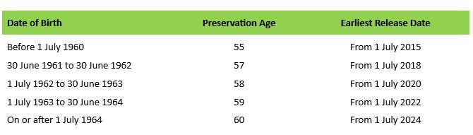 Access to Superannuation Benefits - Preservation Ages